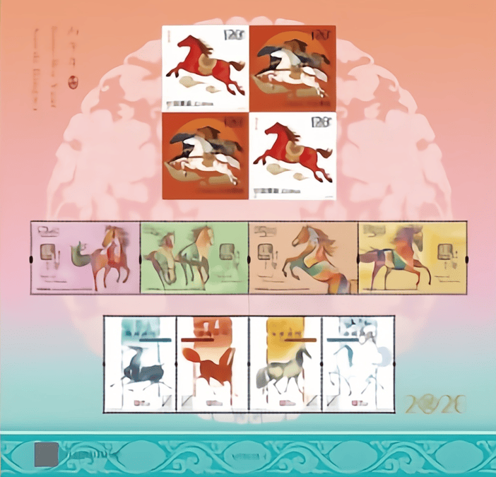 邮票中的骏马既展现出“一马当先”的开拓气概,也诠释了“万马奔腾”的团结力量,将马的形象与新时代中国人民奋发进取的精神风貌完美融合于方寸之间。