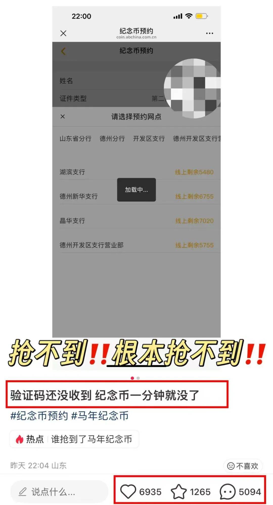 同样的,马年纪念币也非常难抢,吐槽根本抢不到的帖子,引发了数万网友共鸣!真的太难抢了!