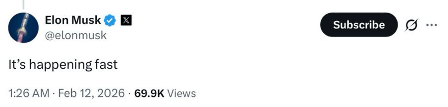 “这发生得太快了(Its happening fast)”2月12日,埃隆·马斯克在社交平台转载了一则由Seedance2.0生成的视频,视频作者称“该模型线年的纽约城市风貌。”